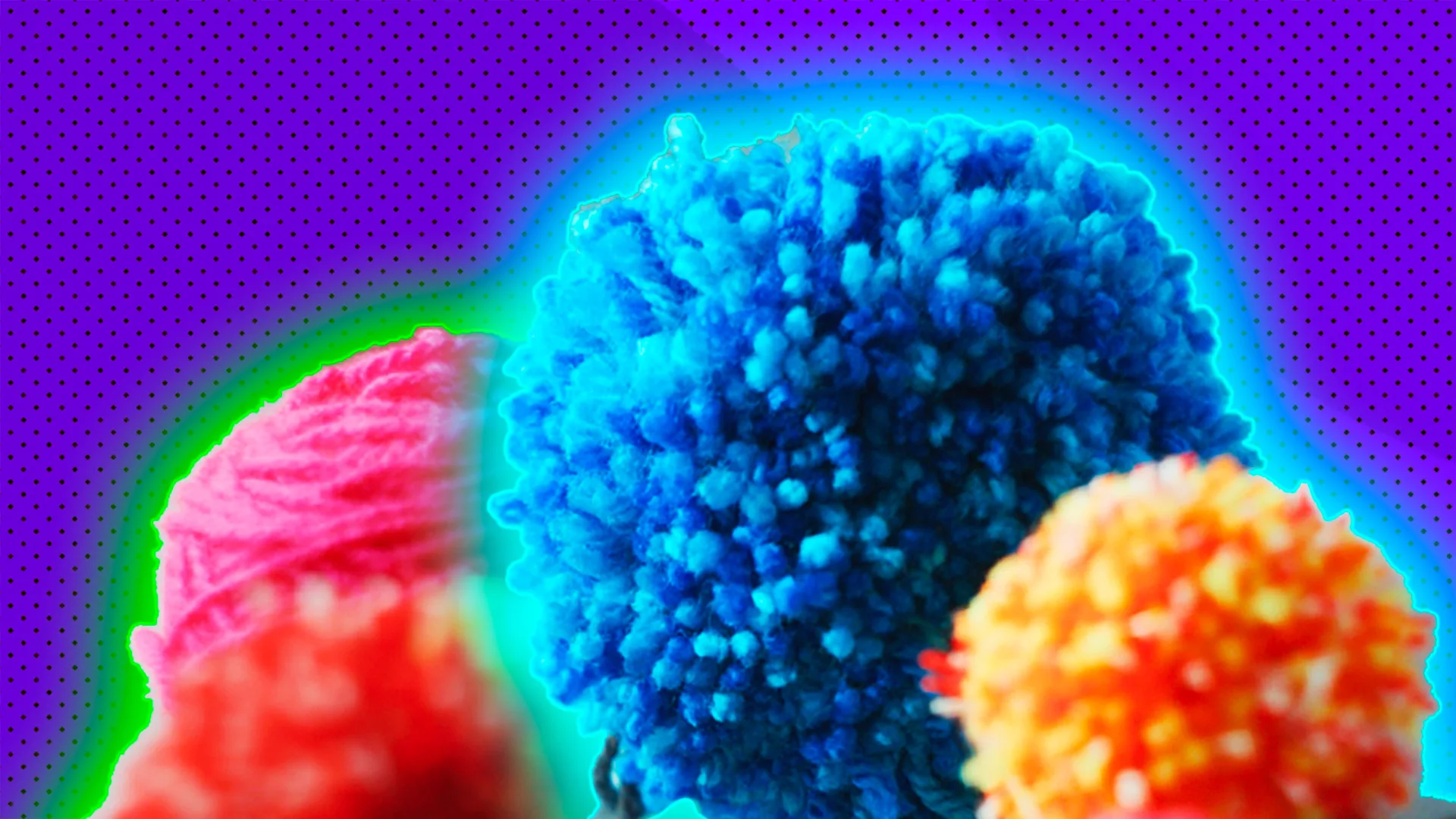 Materials: acrylic yarn/wool, scissors, a pom-pom maker or a fork.