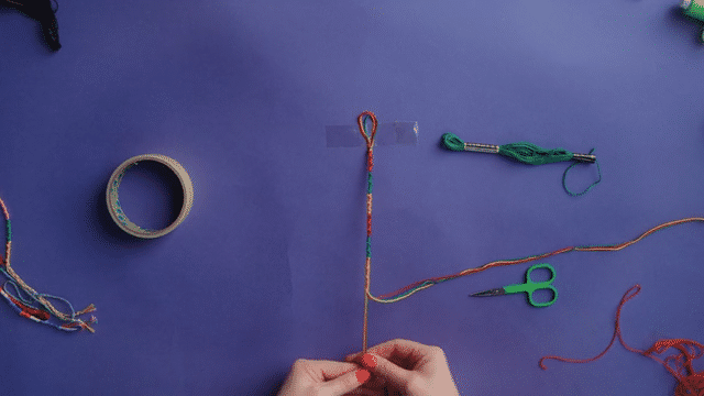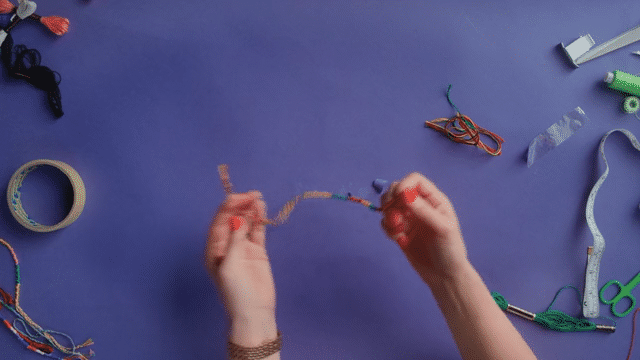 In this short video tutorial below, meet Textile Artist Brooke Dennis and follow the simple steps to learn how to make your own friendship bracelet. All you need is some colourful embroidery thread, Sellotape, a measuring tape and scissors.